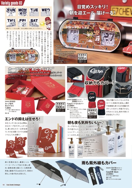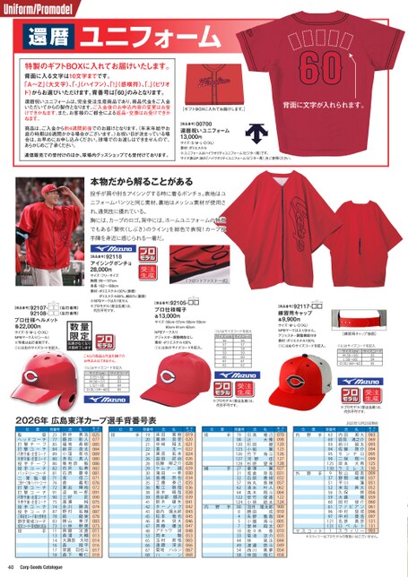 広島東洋カープが展開する2026年度版の公式ファン向けグッズカタログです。応援に欠かせないユニフォームやタオル、キャップといった定番アイテムから、日常生活を彩るインテリア雑貨やキッチン用品まで、多岐にわたる商品が紹介されています。さらに、一流ブランドとのコラボレーションによる高品質なアパレルや、海外の伝統技術を活かした異文化交流アイテムなど、独自性の高いラインナップが特徴です。各ページには商品の詳細なスペックや限定販売数が明記されており、実用性とコレクション性の両面を重視した内容となっています。球団のシンボルカラーである赤を基調としたデザインは、ファンの情熱を形にすると同時に、暮らしに活気を与えるライフスタイル提案としても機能しています。