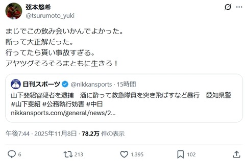 元プロ野球選手、斐紹の飲み会に誘われていたwww