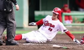 現役ドラフトの広島・辰見 スタンド沸く沸く俊足発揮2盗塁 楽天禁止のヘッスラも敢行